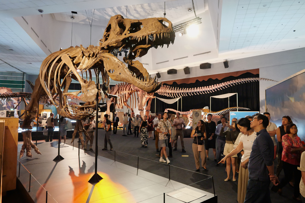 Visitors gaze in awe at ‘Scotty’, the largest T. rex specimen ever discovered. Image credit: LKCNHM, NUS