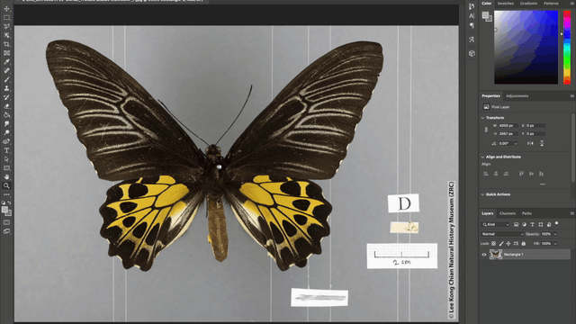 Additionally, the team also automated the photo-editing process such as the addition of watermarks to every image, as well as the redaction of locality labels in images of rare species. These automations were achieved using the “Action” tool in Adobe Photoshop where batches of image files can be automatically edited according to a fixed set of instructions applied. For example, in redacting locality information for images of rare specimens, a set of instructions to place a grey rectangle over the locality label was applied to all the images that need editing and voila, all the locality labels are covered up!